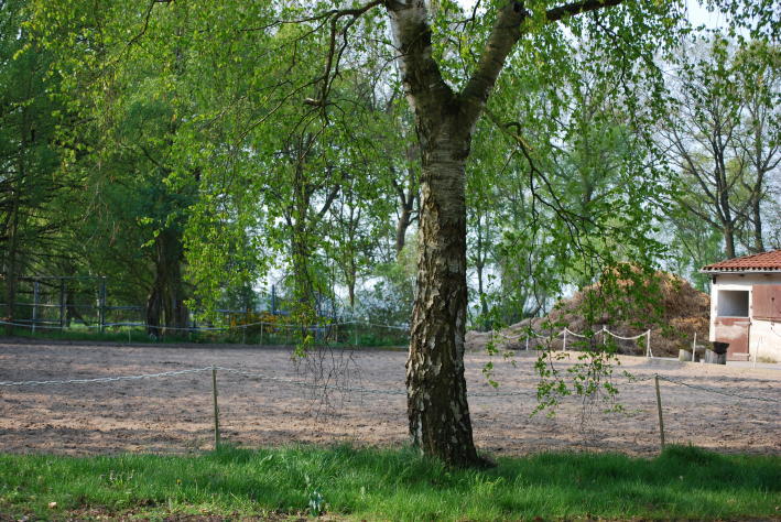 Nach dem Reiten hat jeder seine Pferdeäppel zu entfernen und ein Stück Hufschlag zu haken, damit die Halle in Ordnung bleibt.